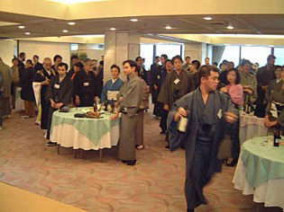 ![]() ![]() 昨年以上に女性参加者も多く、とっても賑やかな会となりました。 初参加の方が多かったため、会場の雰囲気作りが気になるところでしたが、 主催側の心配をよそに、乾杯直後から気分は一気に頂点へ。熱気とパワーみなぎる会でした。 それにしても、振袖の女性(写真右上)がお一人だけいらしたのですが、 気づかなかった方も多かった?! 普段は目立って仕方ない着物姿も、この会場内では当たり前すぎる服装ということでしょうか? |